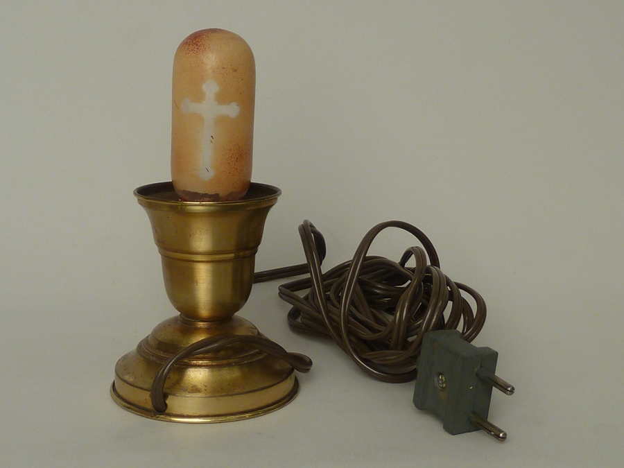 Armatuur met rood-gele gloeilamp waarop kruisje