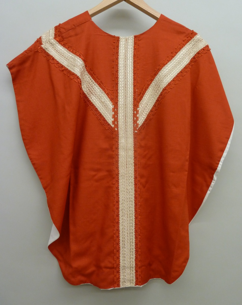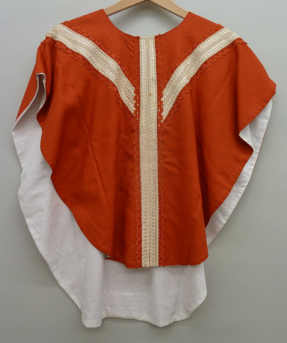 Rood kinderkazuifel met gaffelkruis van wit en rood sierband