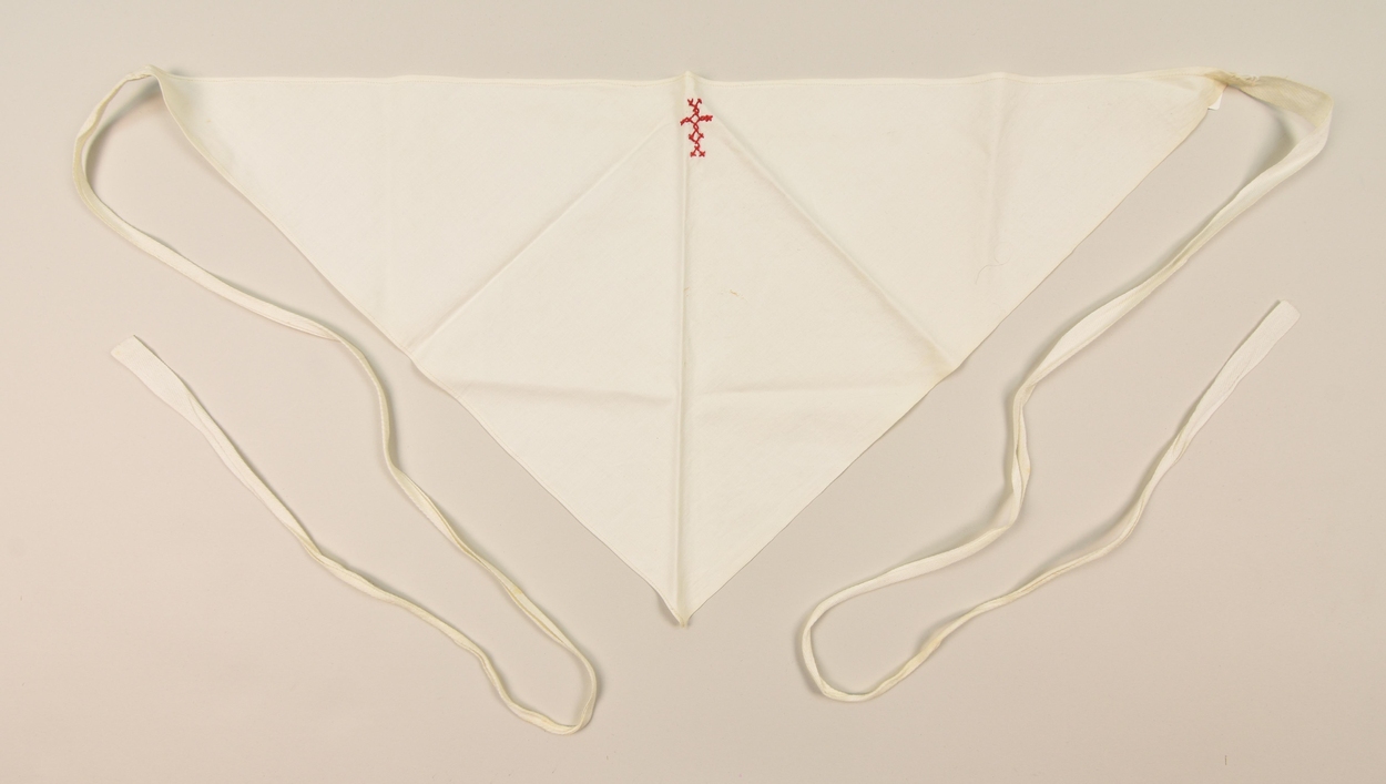 Witte kinderamict, driehoekig met rood kruisje