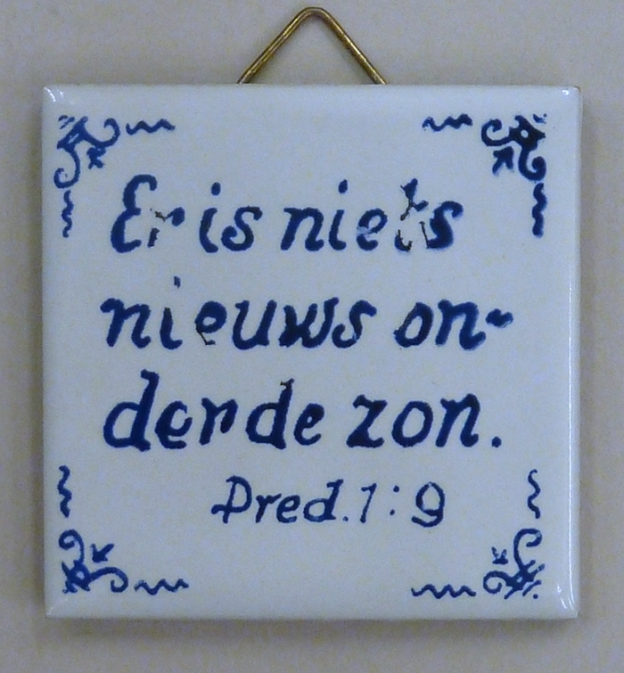 Tegel met spreuk "Er is niets nieuws onder de zon. Pred.1:9"