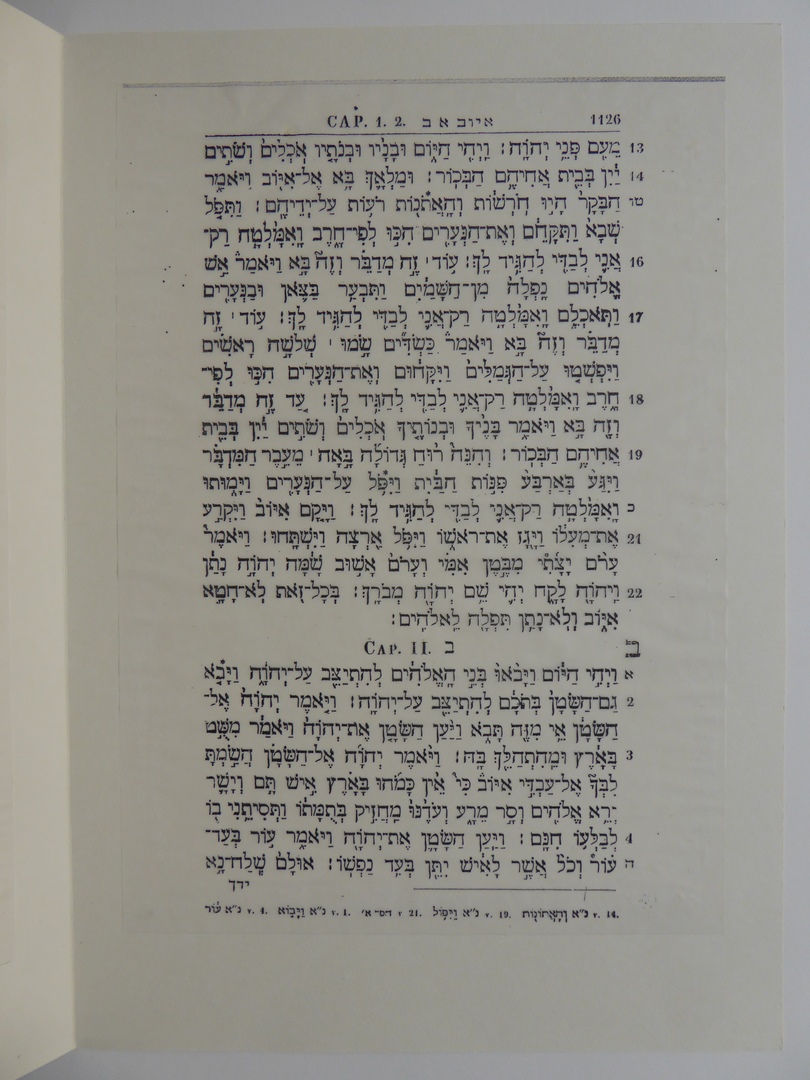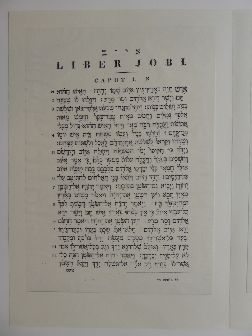 Omslag met twee gedrukte transparante bladen met Hebreeuwse tekst uit het boek Job