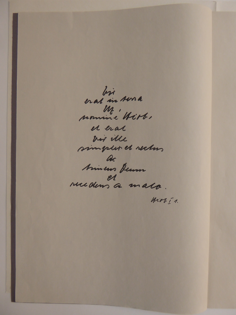 Omslag met geschreven teksten in het Duits en Latijn behorend bij de 13 tekeningen "Hiob"