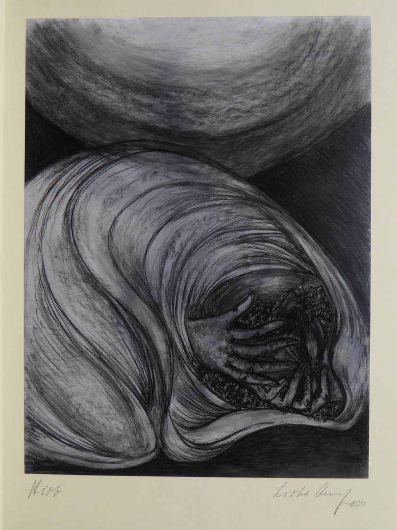 Foto (VI) van tekening: Job werpt zich op de grond (Job 1:21-22), in omslag