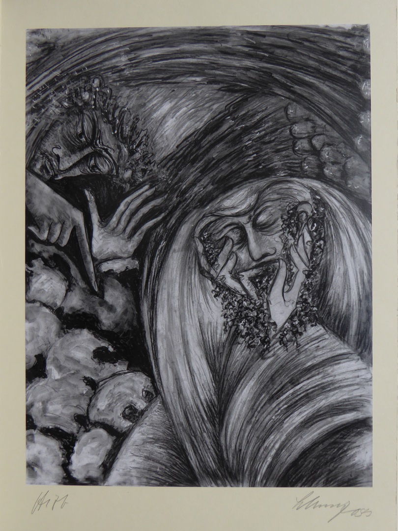 Foto (IX) van tekening: Job bezocht door zijn vriend(en) (Job 2:11-13), in omslag