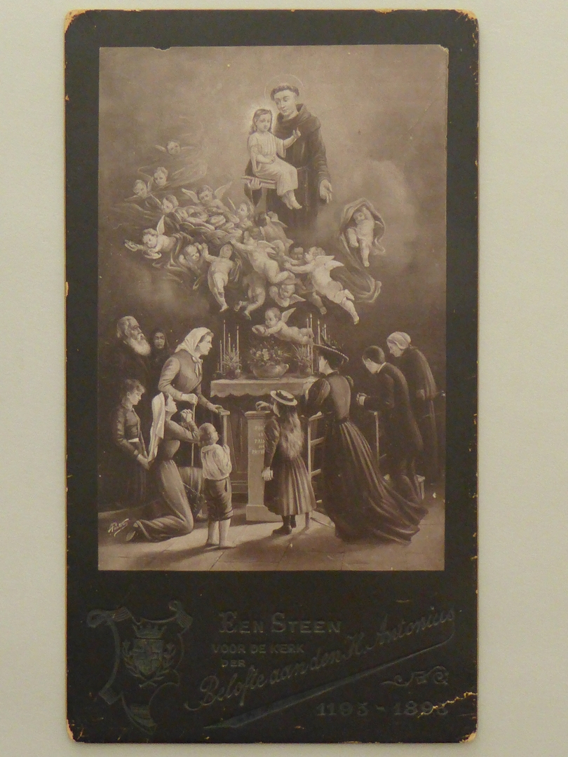 Plaat met H. Antonius en "Een Steen voor de kerk der Belofte aan den H. Antonius 1195-1895"