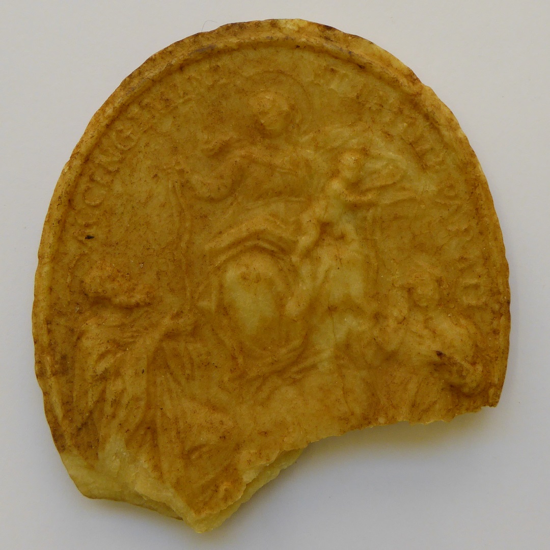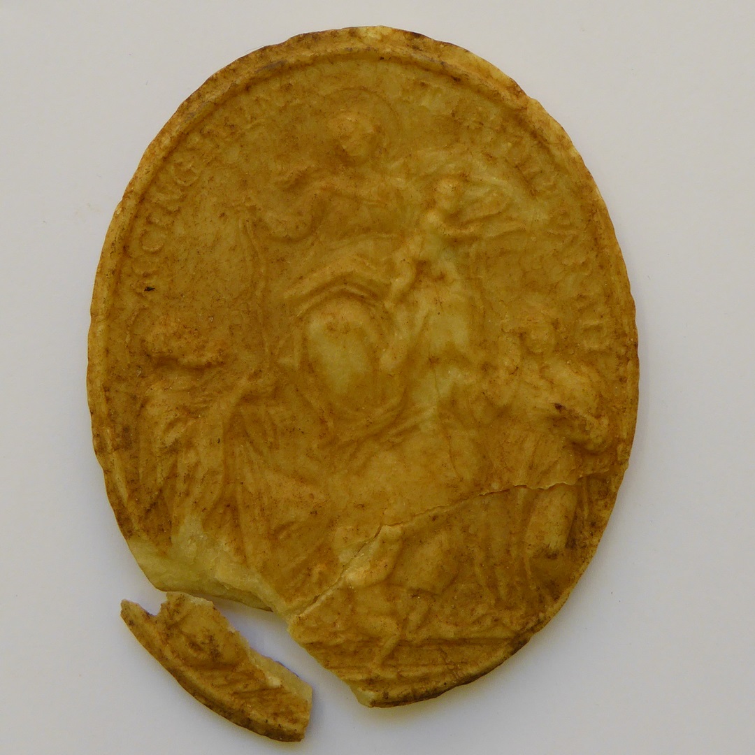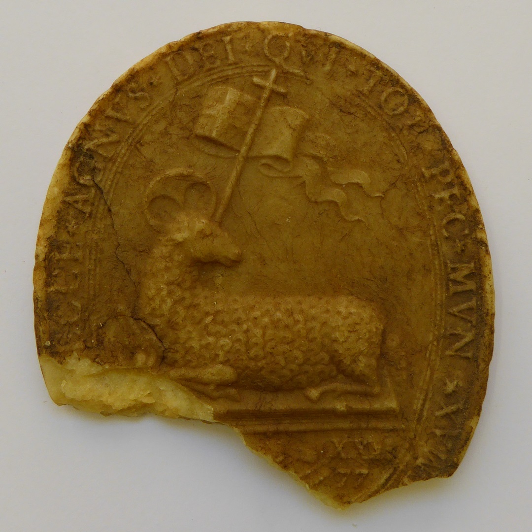 Agnus Dei met Paus Pius XI en Lam Gods, kz. Maria rijkt haar gordel aan Augustinus en Monica