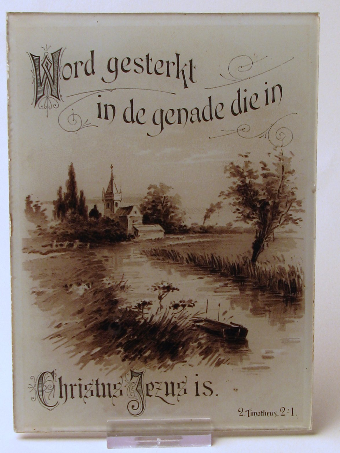 Afbeelding van landschap met "Wordt gesterkt in de genade die in Christus Jezus is" voor op tafel