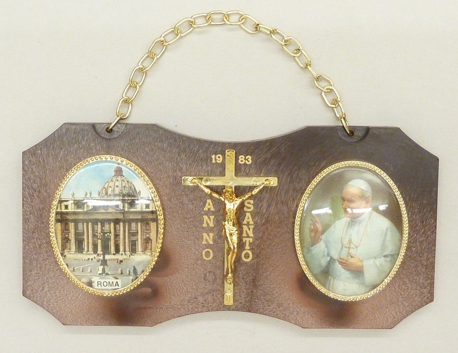 Bedevaartssouvenir van het H. Jaar 1983 met Sint Pieter en portret van paus Johannes Paulus II