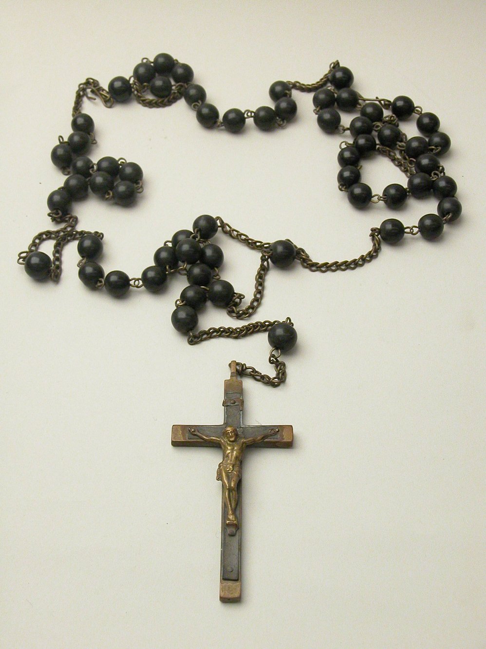 Rozenkrans van zwart houten kralen en koperen crucifix