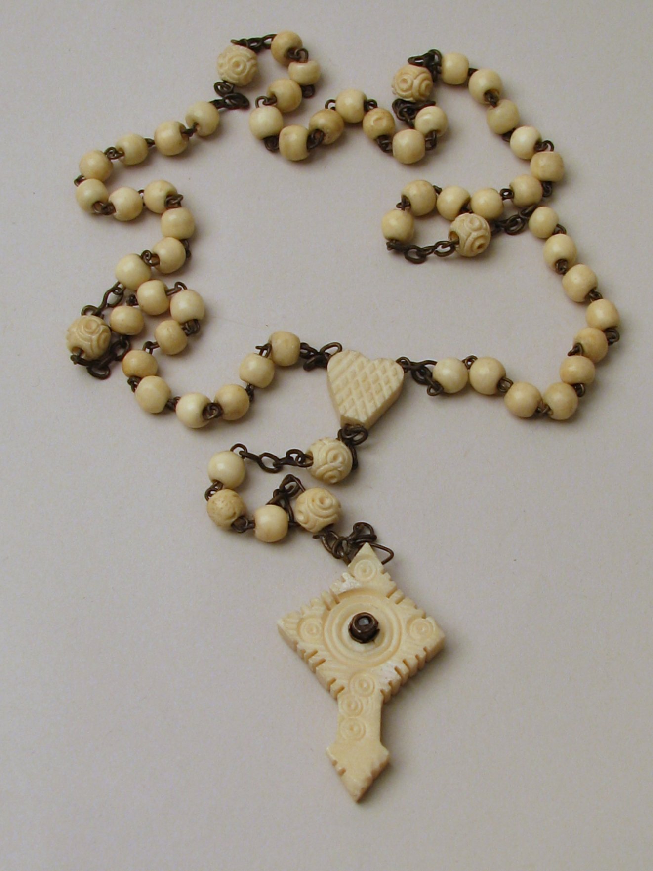 Rozenkrans met kruisje waarin lensje met afbeelding met "Ricordo di Roma"