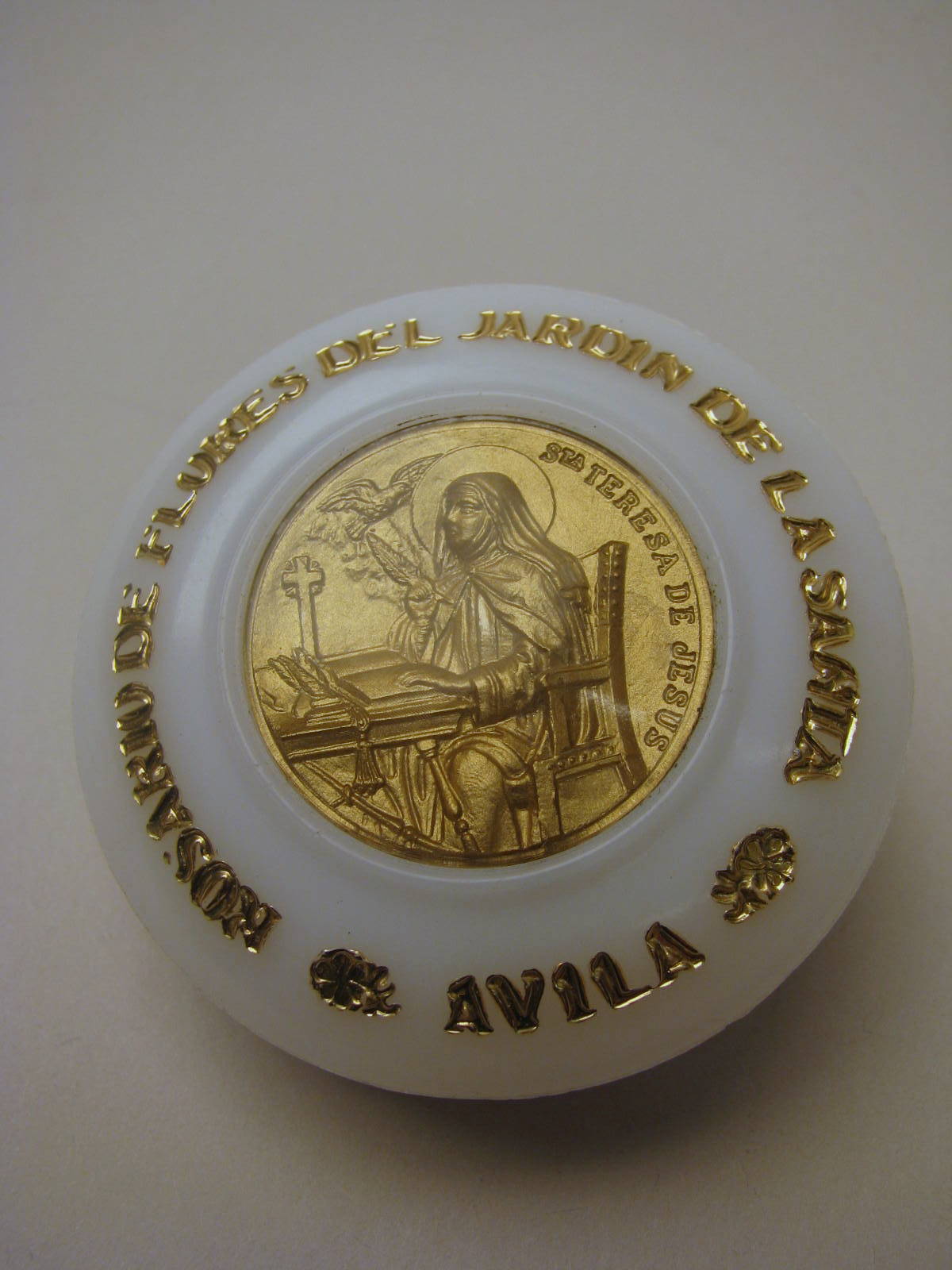 Rozenkransdopje met afbeelding van Theresia en met "Rosario de flores ...", hoort bij RMCC v754a