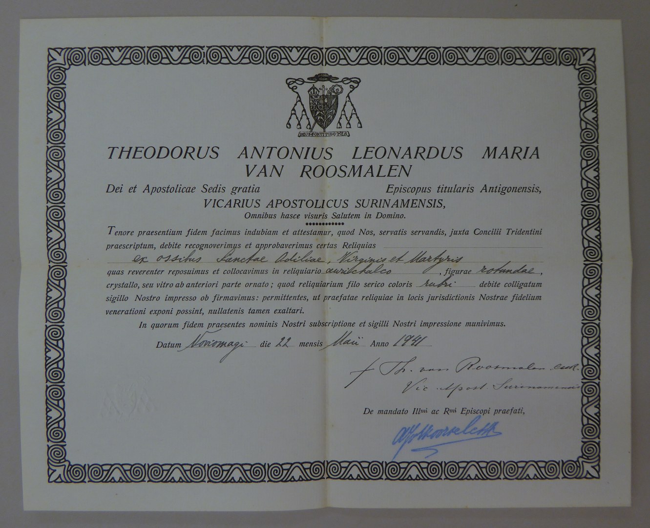 Echtheidsverklaring bij reliek H. Odilia in RMCC v762a met "Theodorus ... van Roosmalen ..."