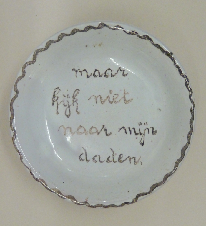 Wandbordje met "maar kijk niet naar mijn daden"