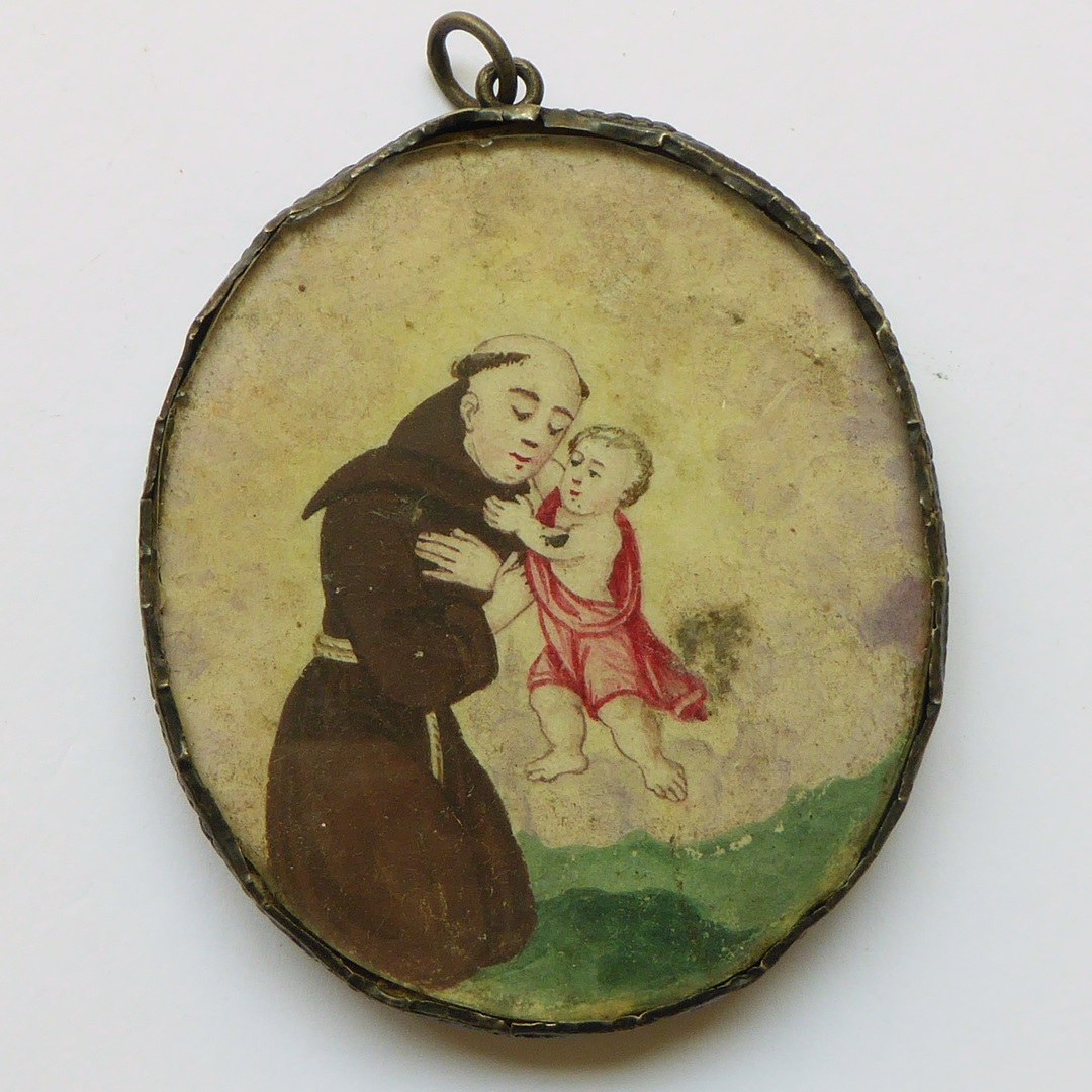 Reliekhouder met afbeelding Antonius van Padua en relieken van H. Martinus, H. Bernardus en anderen