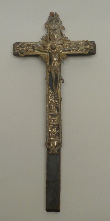 Christus aan het kruis met lijdenswerktuigen en INRI bordje