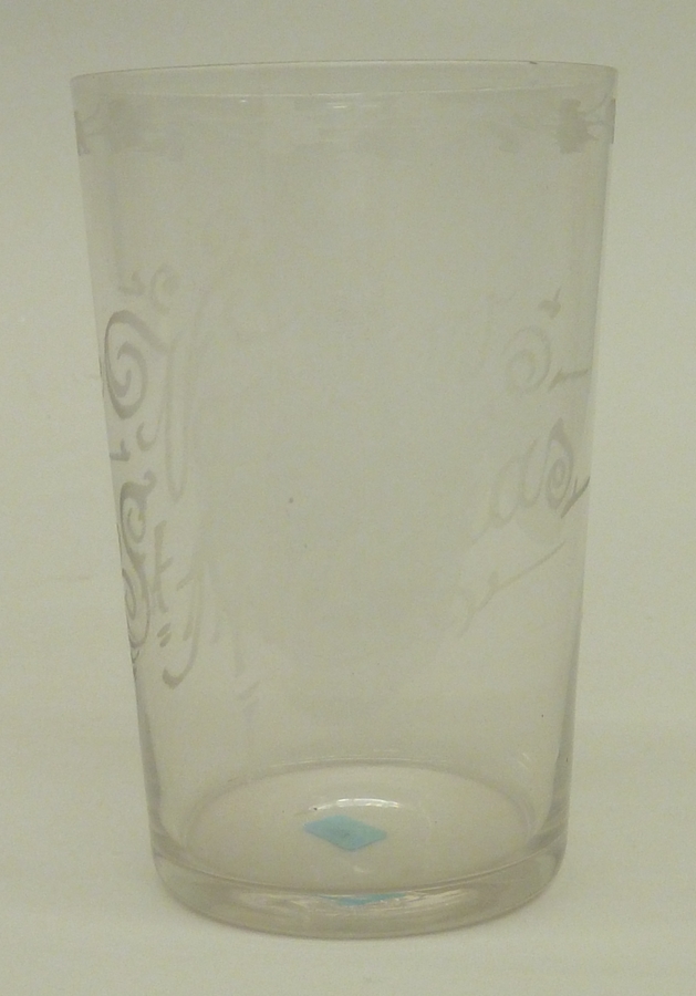 Drinkglas met gegraveerde guirlandes langs rand en met "Voor Uw Sint Nicolaas"