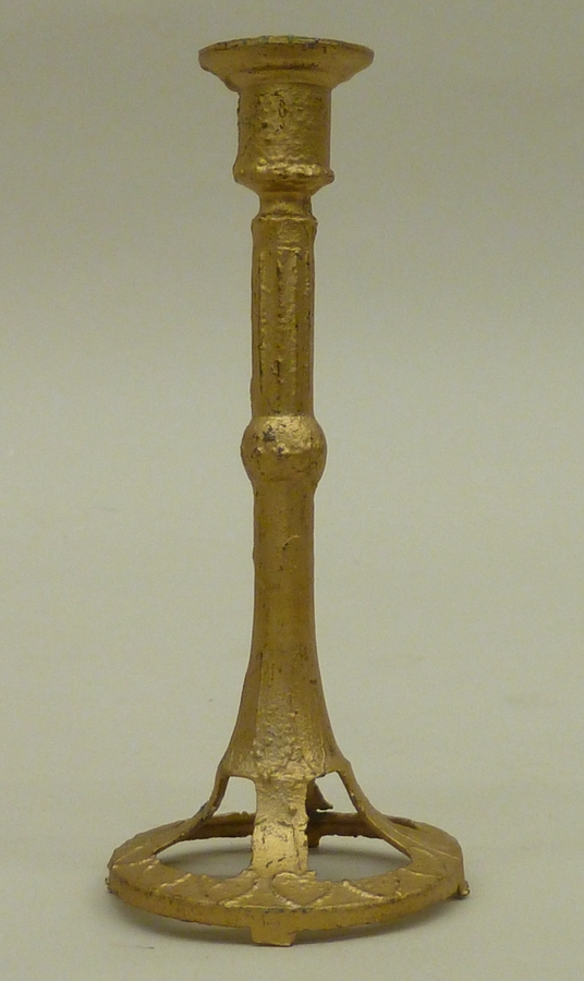 Goudkleurige speelgoedaltaarkandelaar op ronde opengewerkte voet