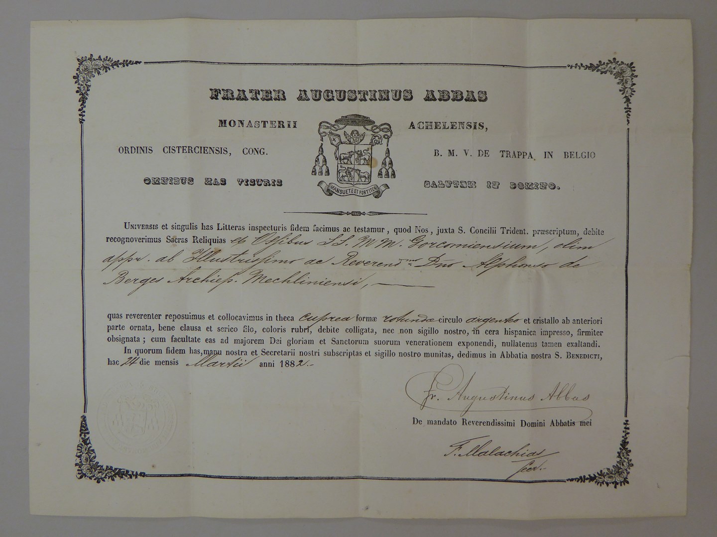 Echtheidsverklaring bij RMCC v81.9 met "Frater Augustinus abbas ..."