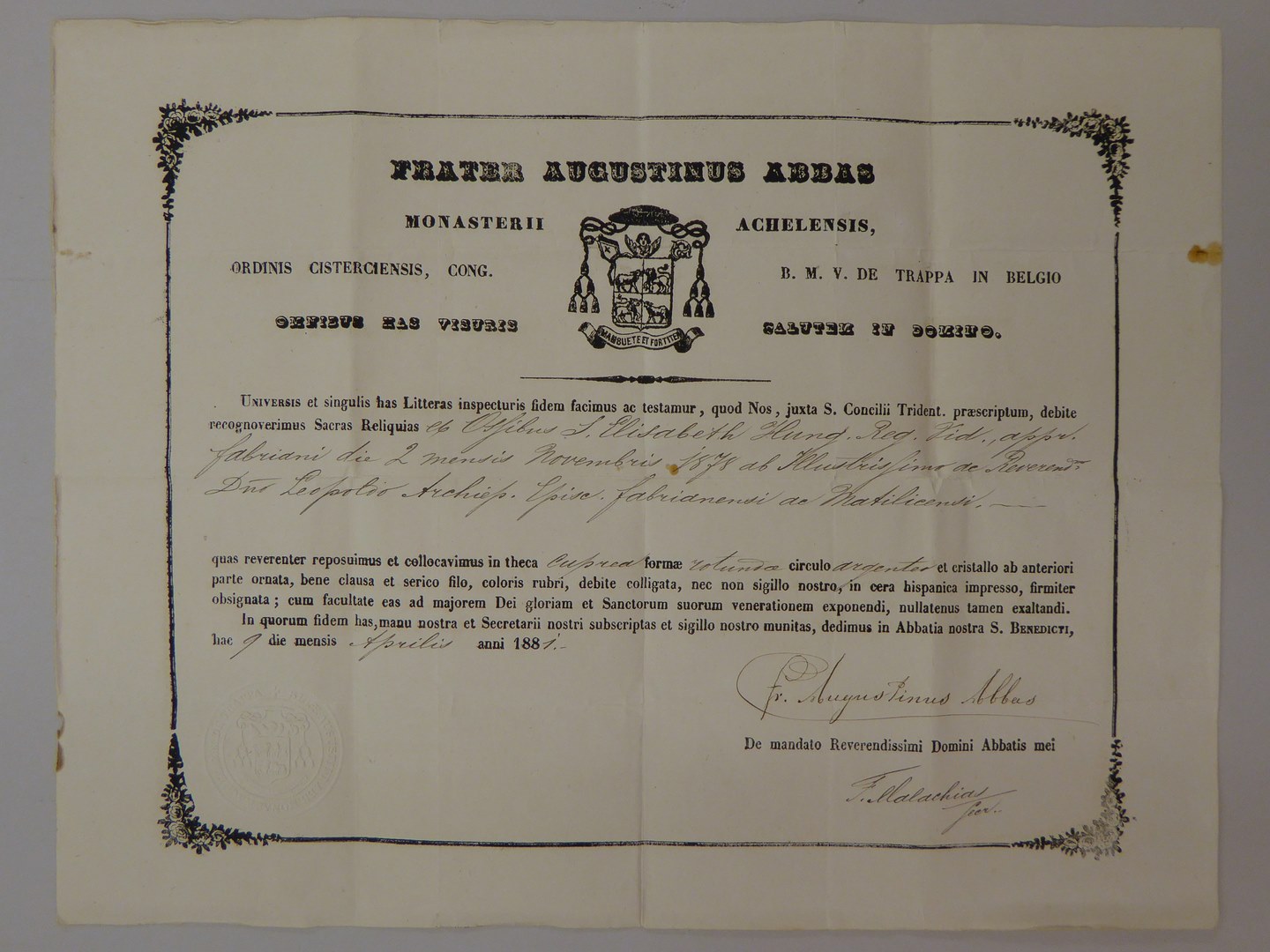Echtheidsverklaring bij RMCC v81.15 met "Frater Augustinus abbas ..."