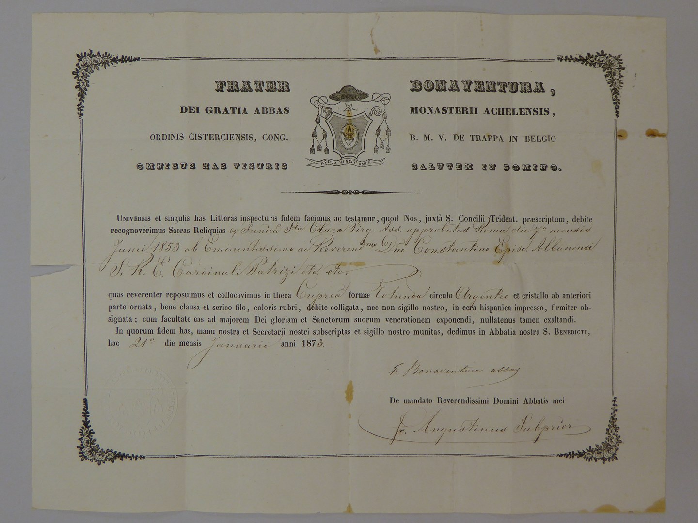 Echtheidsverklaring bij RMCC v81.1 met "Frater Bonaventura ..."