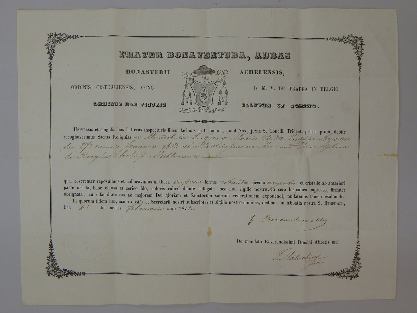 Echtheidsverklaring bij RMCC v81.19 met "Frater Bonaventura, abbas ..."