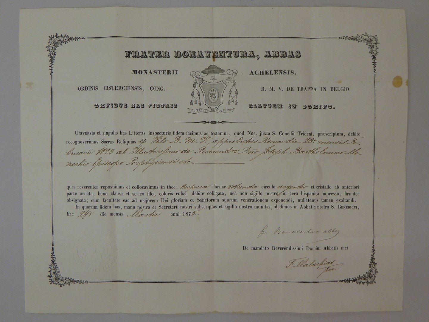 Echtheidsverklaring bij RMCC v81.5 met "Frater Bonaventura, abbas ..."