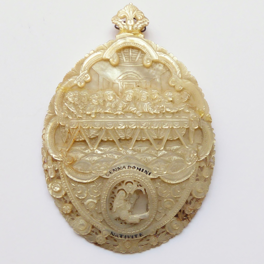 Ovaal relief met laatste avondmaal naar Leonardo da Vinci en "Nativité"