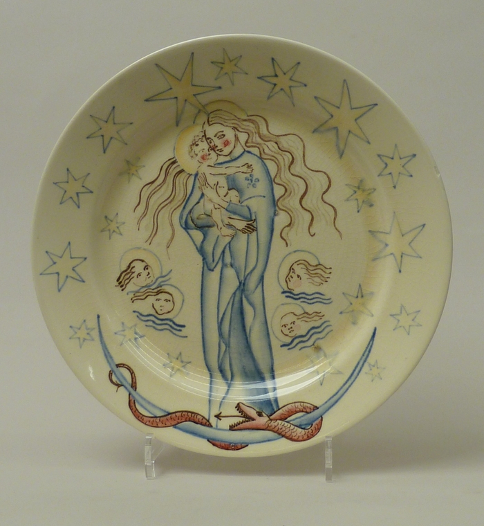 Wandbord met Maria met kind op maansikkel, de slang vertrappend, omgeven door sterren