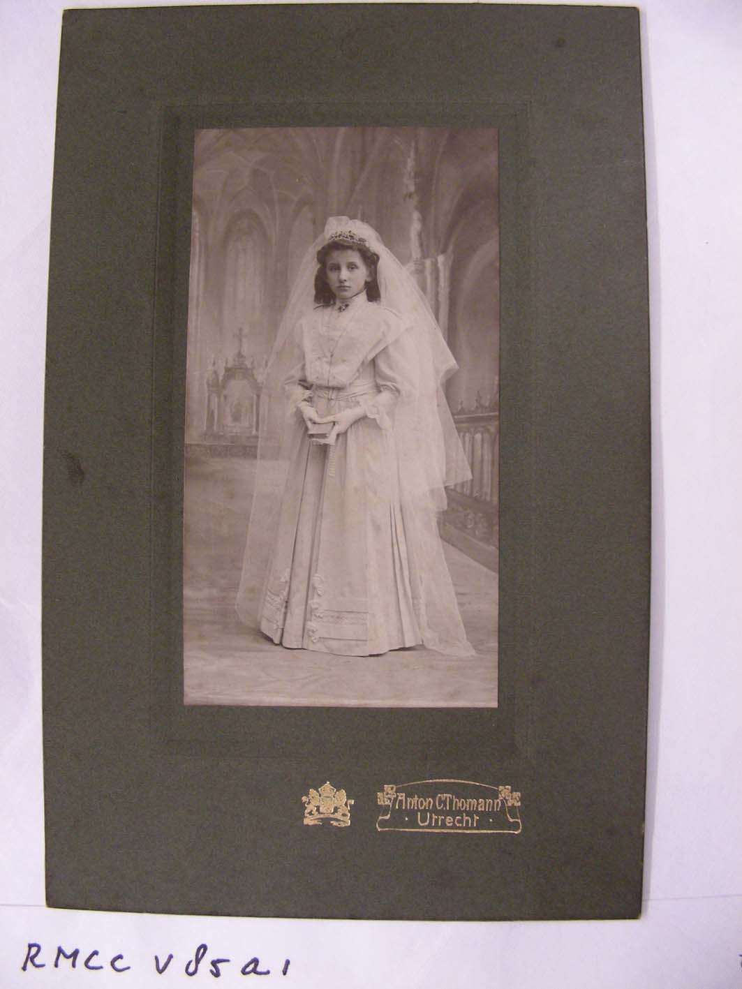 Foto met afbeelding Marie N.E. Beyaert als communiebruidje