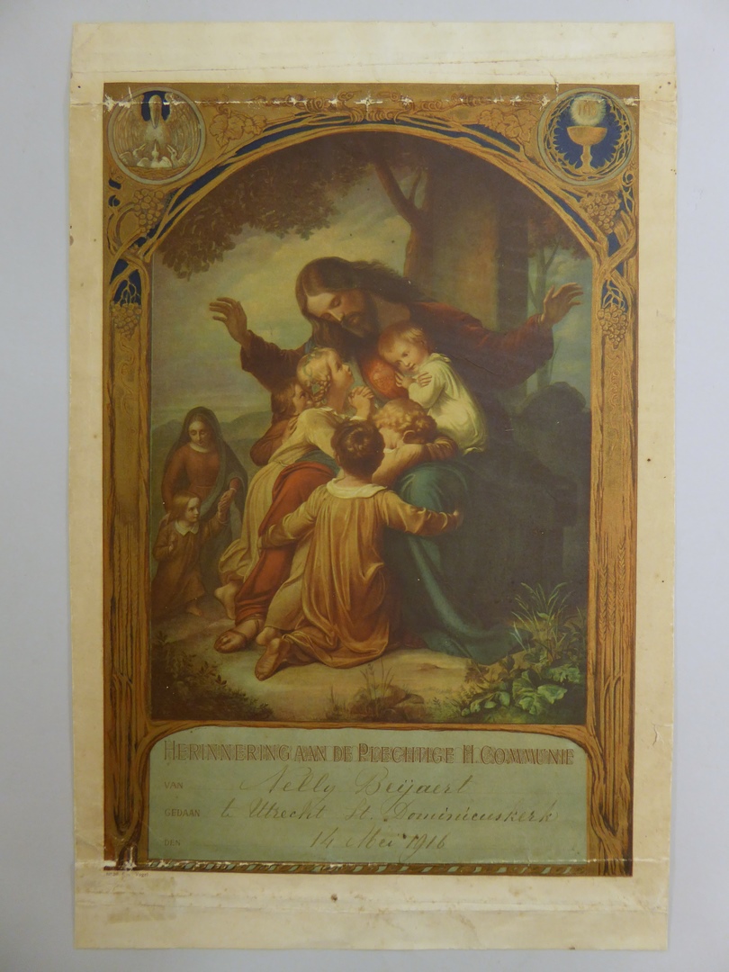 Prent bedoeld als herinnering Plechtige H. Communie Nelly Beyaert