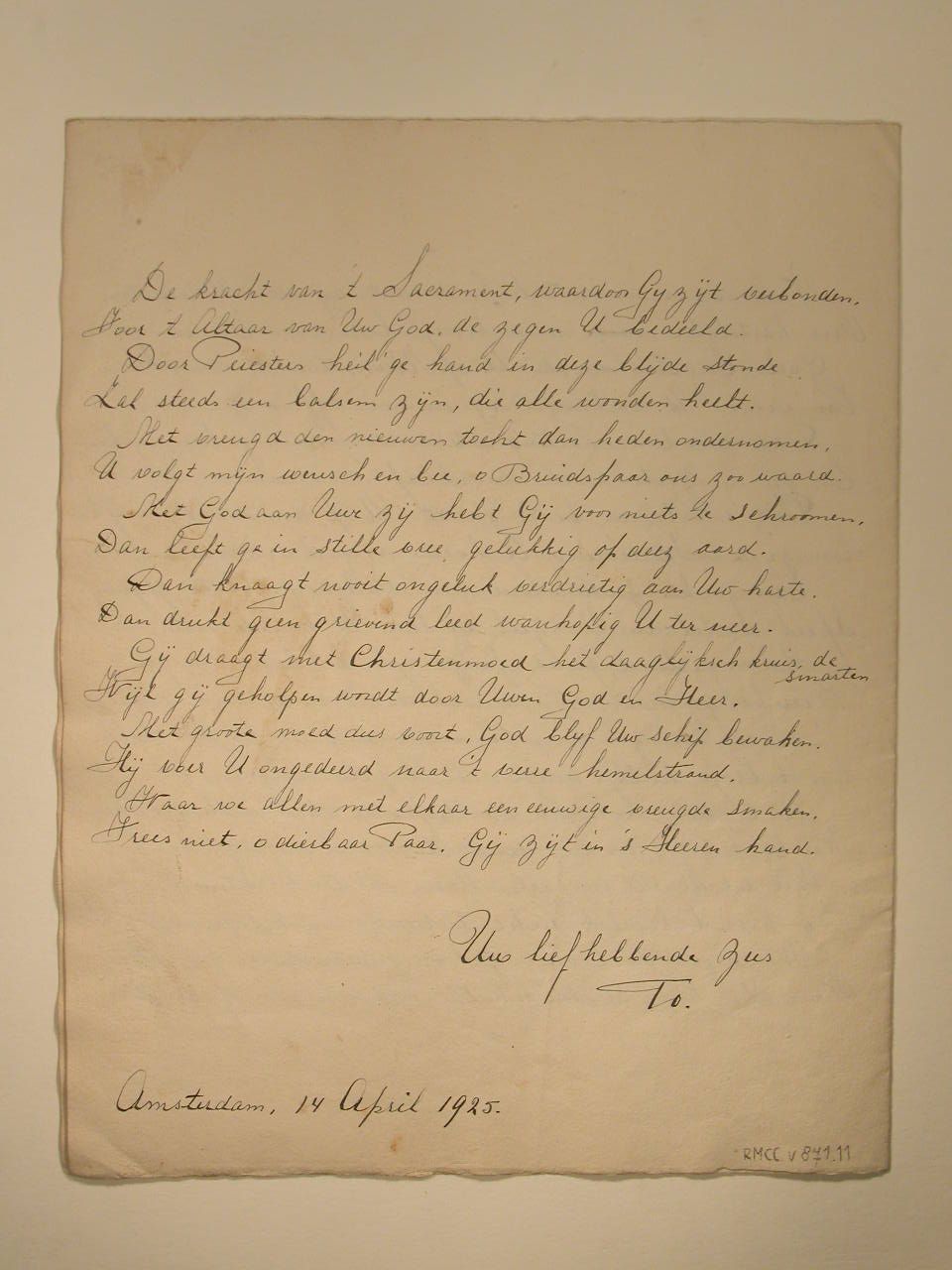 Huwelijkswens, opgedragen door zus To