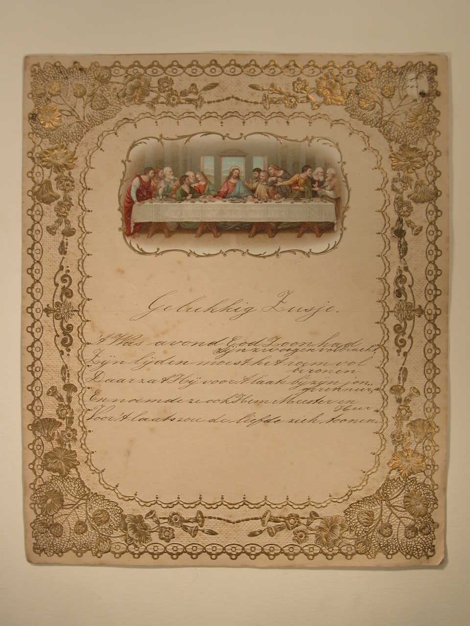 Eerste communiewens met laatste avondmaal, opgedragen voor zusje door broer Karel