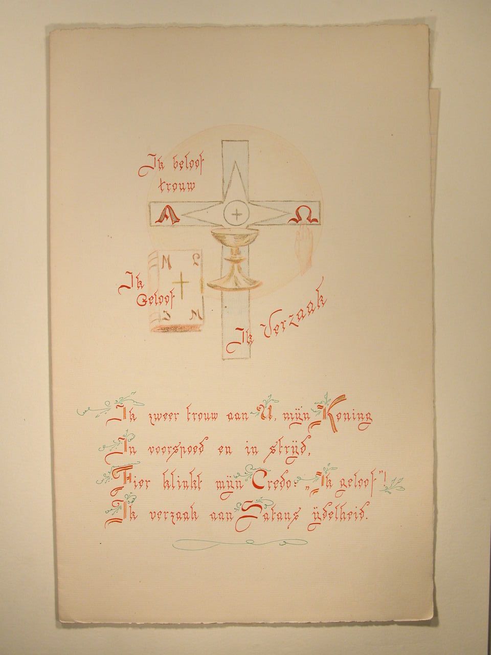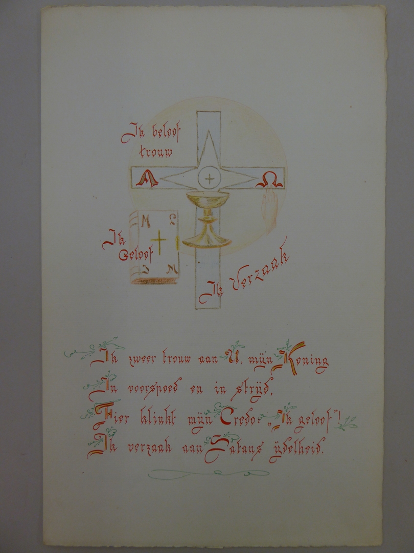 Communiewensen bij plechtige H. Communie in omslag met kruis, kelk en bijbel, opgedragen voor Diny door Gerda en Hans