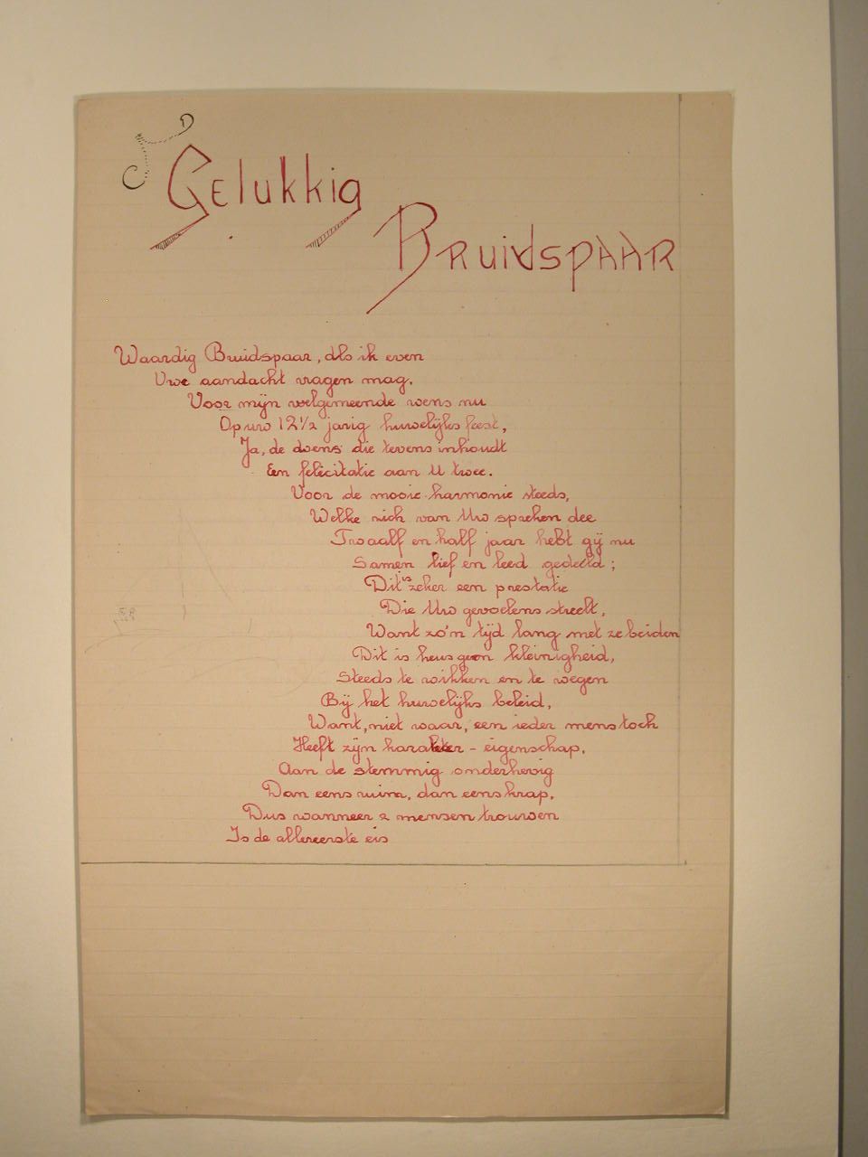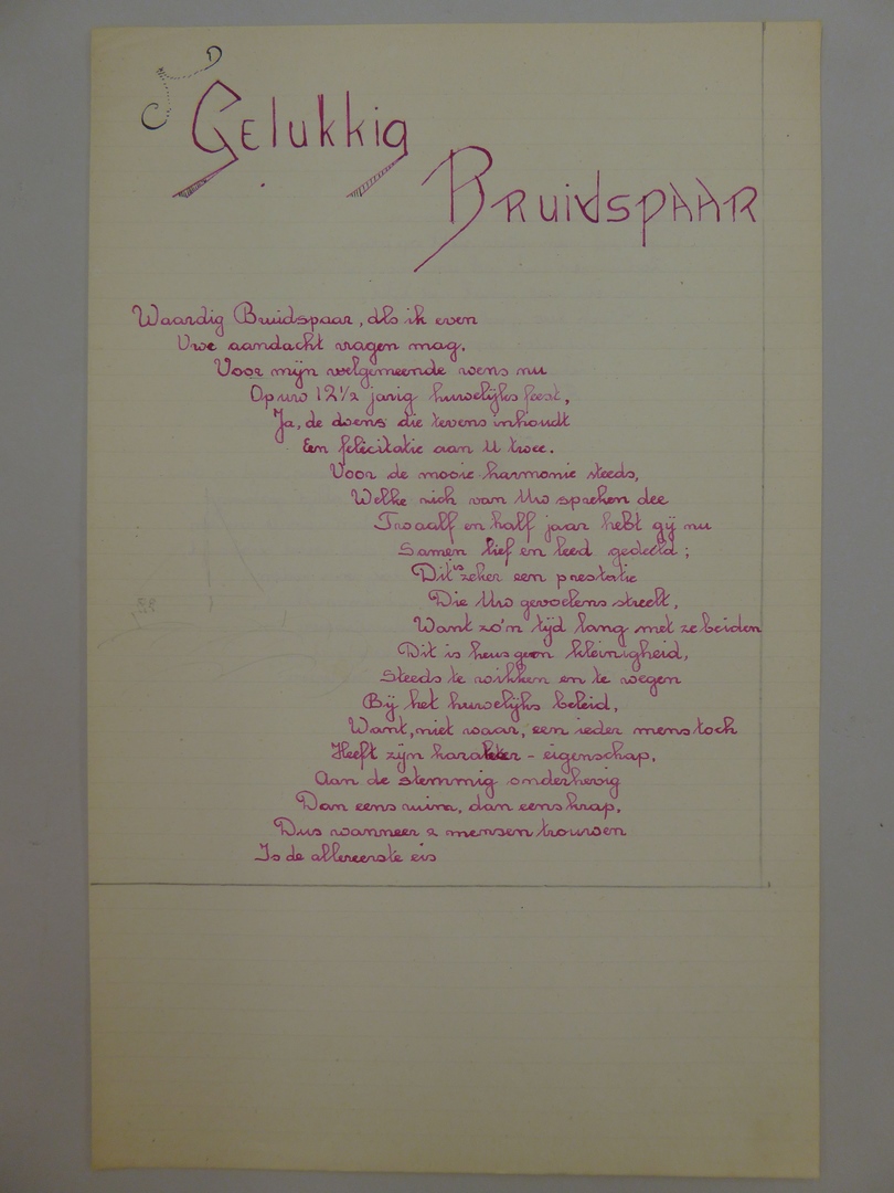 Huwelijkswens bij 12½-jarig huwelijksfeest met "Gelukkig bruidspaar ..."