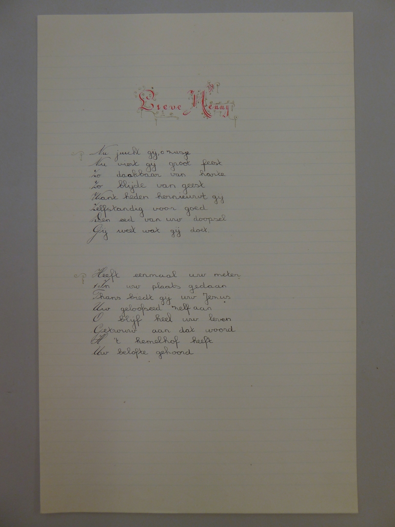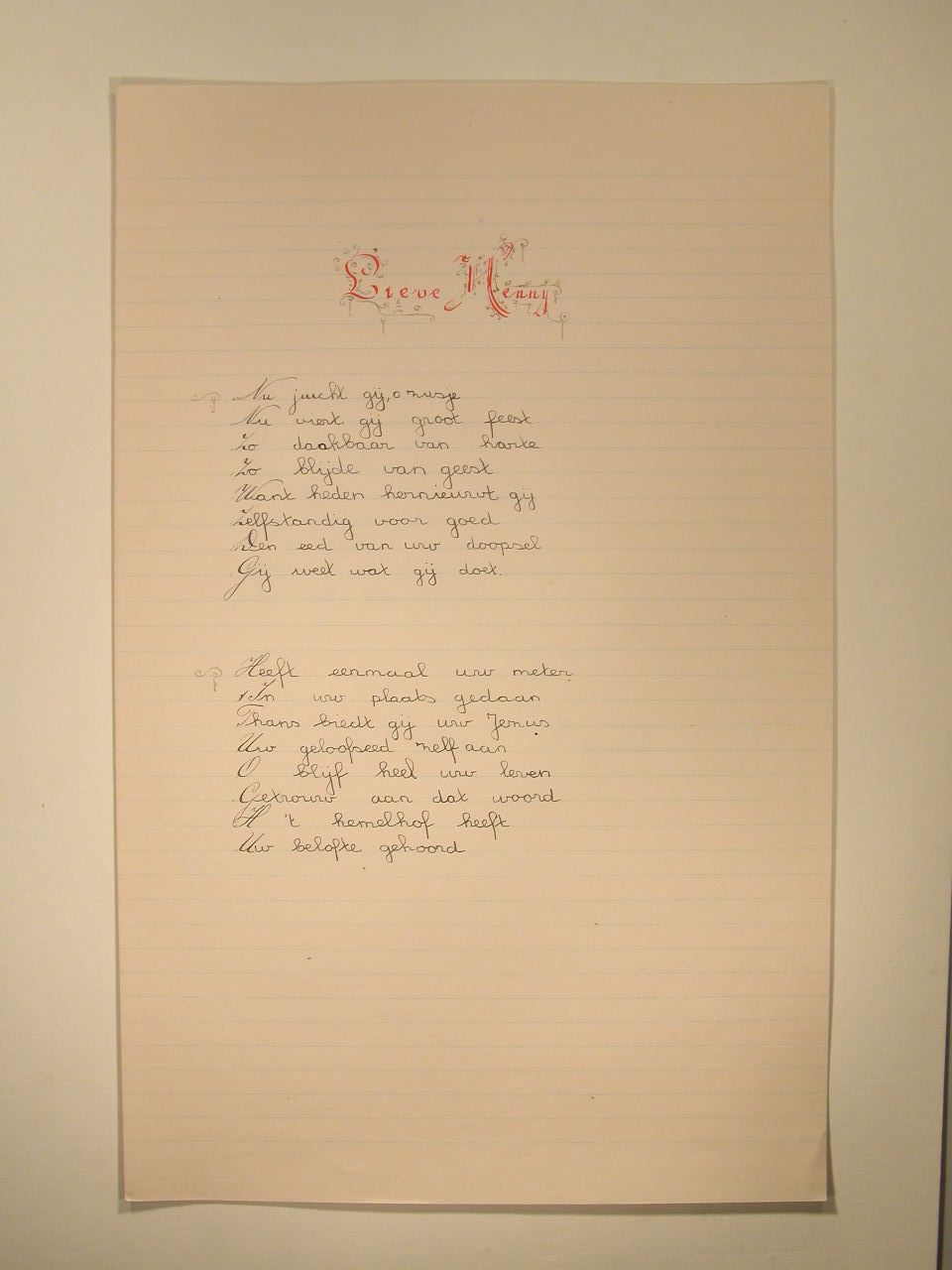 Wens bij herinnering aan de plechtige vernieuwing van de doopbeloften met "Lieve Henny, Nu juicht gij, o zusje ...", opgedragen voor Henny door Gerda