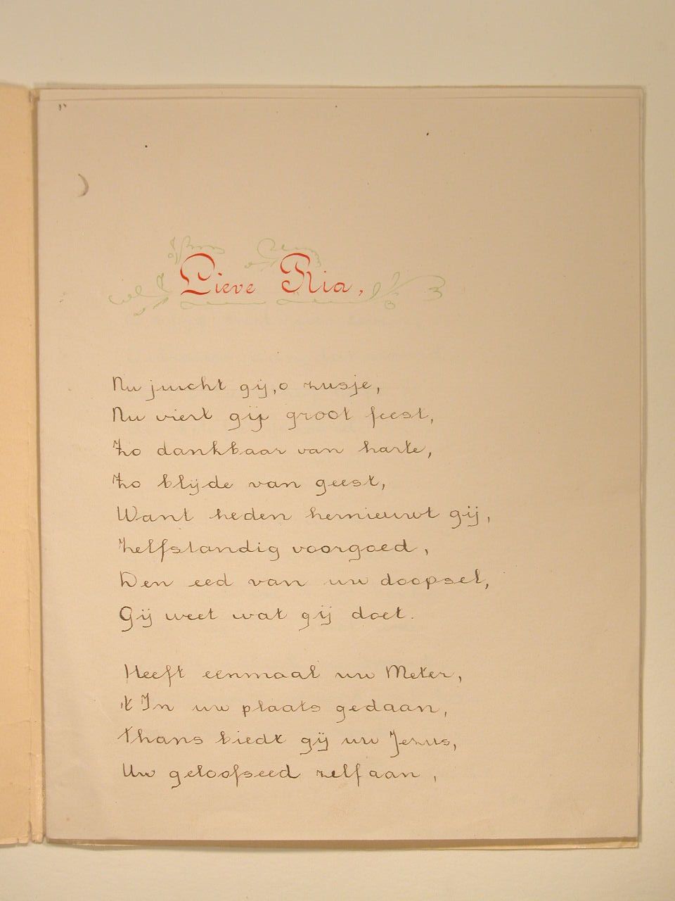Wens bij "Herinnering aan de plechtige vernieuwing van je doopbeloften", opgedragen voor Ria door Jo, Hans, Henny en Diny