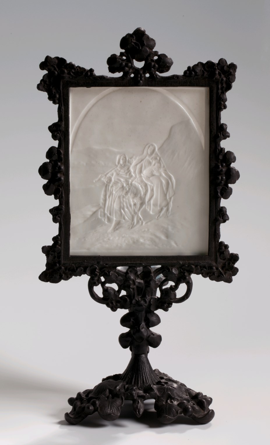 Nachtlampje met florale motieven, met glazen olielampje RMCC v880b, waarbij vier porseleinen lithofanie voorstellingen RMCC v880c t/m f