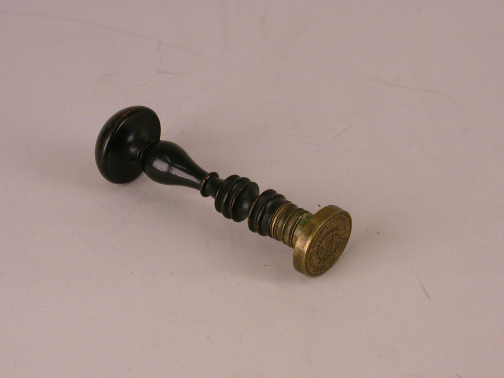 Benodigdheden voor het maken van reliekmedaillons: zegelstempel van Nederlandse Provincie der Jezuïeten