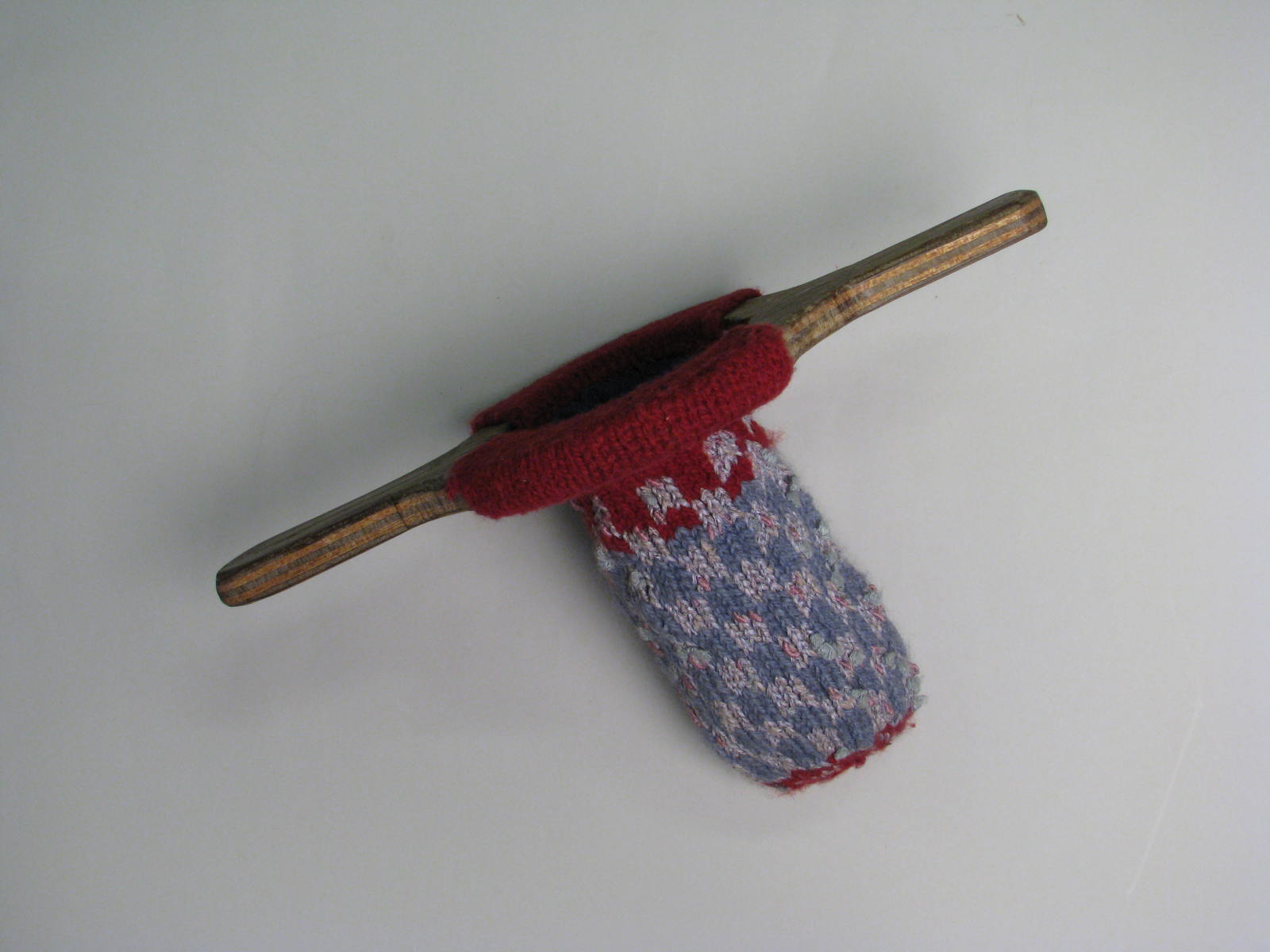 Gebreide kleurige collectezak met blokpatroon, met multiplex handvatten