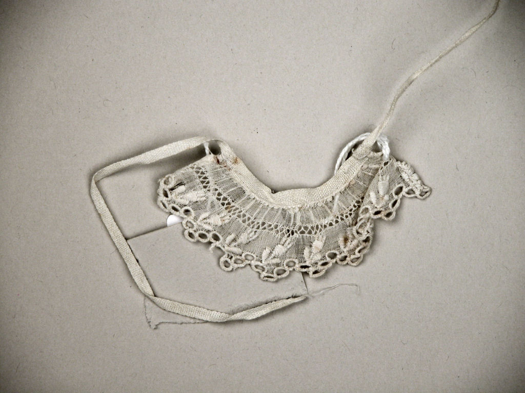 Wit kraagje met tulpjes langs rand, voor Christuskind van staakmadonna