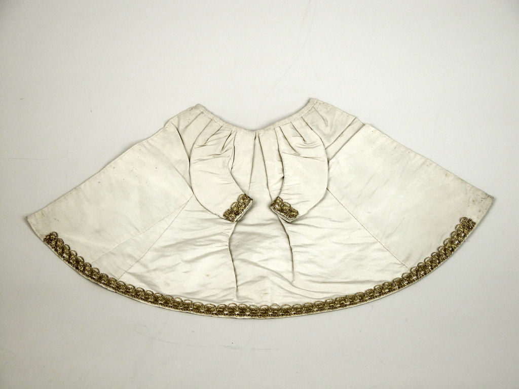Wit kleedje afgezet met goudgalon, voor Christuskind van staakmadonna
