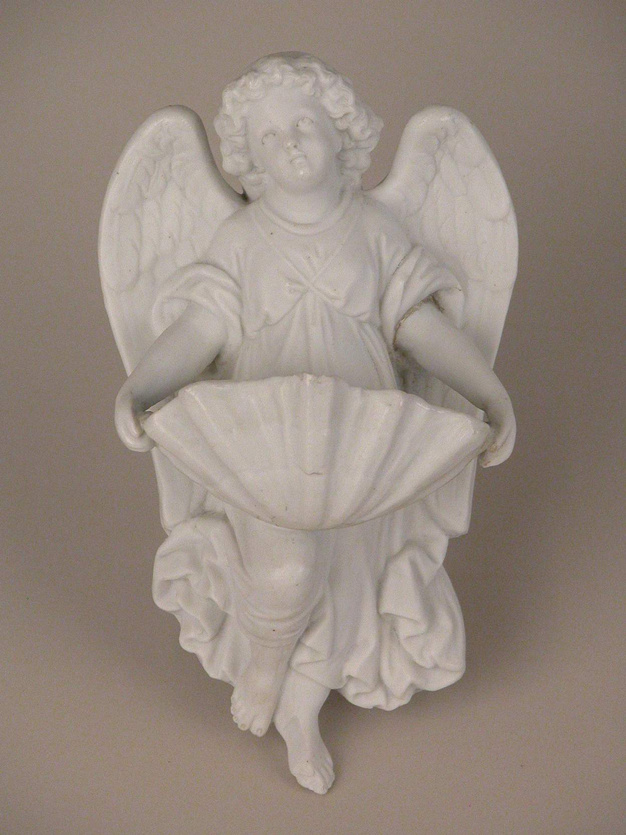 Wijwaterbakje, vliegende engel die een schelp draagt