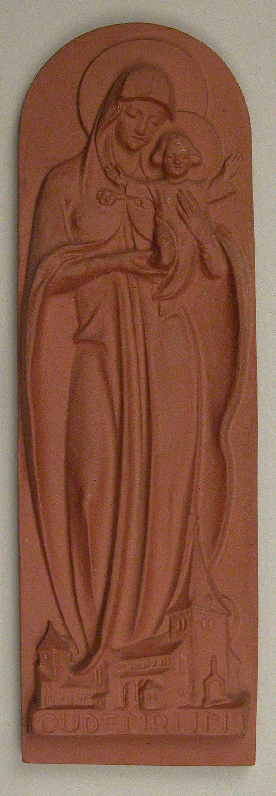 Reliëfplaquette met Maria met kind op kerk van Oudenrijn