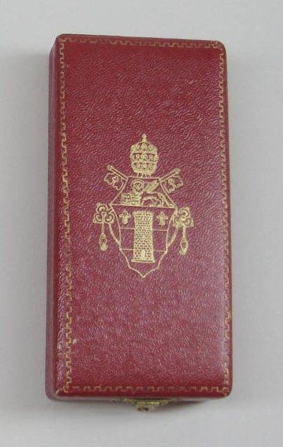 Rode foedraal met het wapen van paus Johannes XXIII, waarin RMCC v957a en b