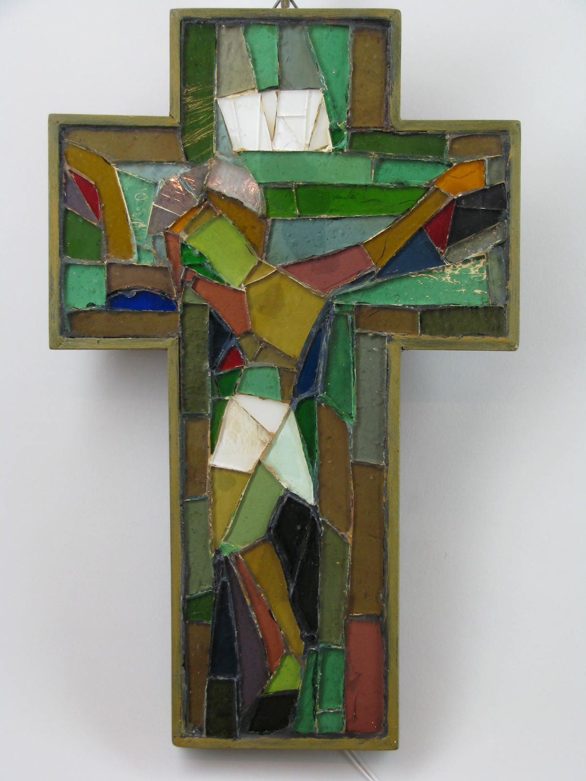 Kruis met corpus in mozaïek van gekleurd glas
