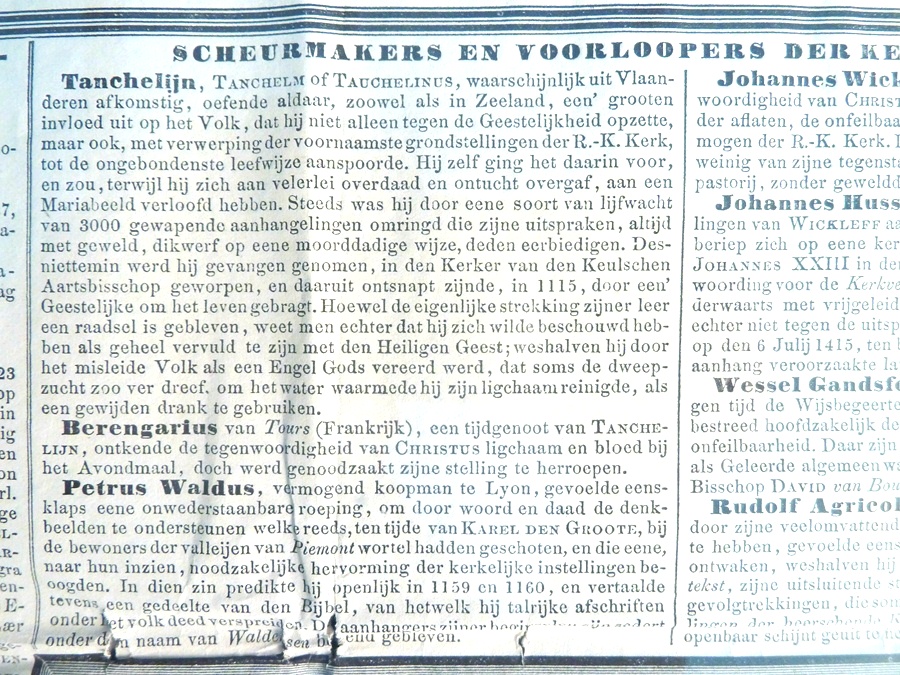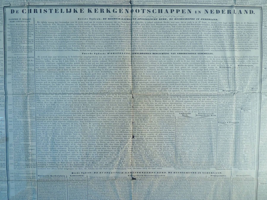De Christelijke Kerkgenootschappen in Nederland, schema met o.a. bisschoppen van Utrecht, kerkhervormers en belangrijkste geloofsbelijdenissen