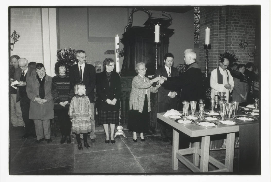 Hervormd predikant Jos de Heer (Nicolaaskerk, Utrecht) tijdens het avondmaal