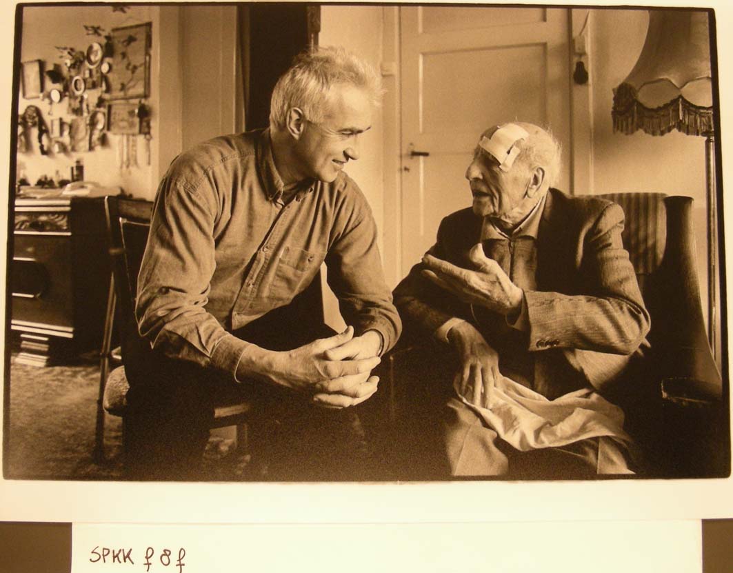 Hervormd predikant Jos de Heer (Nicolaaskerk, Utrecht) tijdens een huisbezoek bij een oudere man