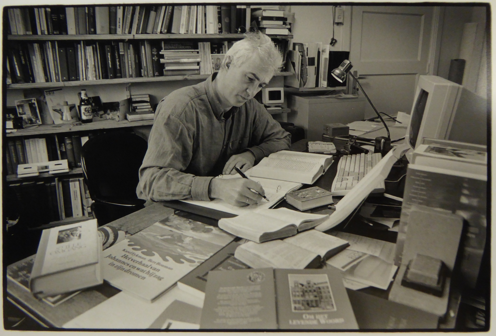 Hervormd predikant Jos de Heer (Nicolaaskerk, Utrecht) op zijn werkkamer