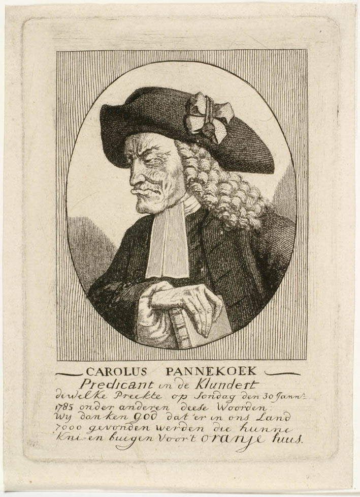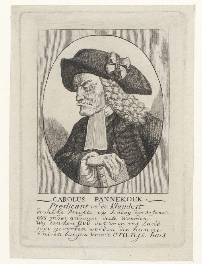 Portret van Carolus Pannekoek (Pantekoek)(1758-1834), predikant te Klundert, met zevenregelige tekst